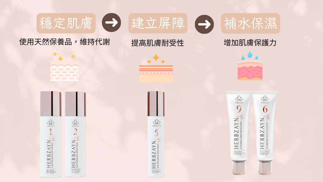 當皮膚穩定後,我們就要幫肌膚建立保護屏障,類似幫它加了一層防水雨衣這樣,透過多一層保護,提高肌膚耐受性。
